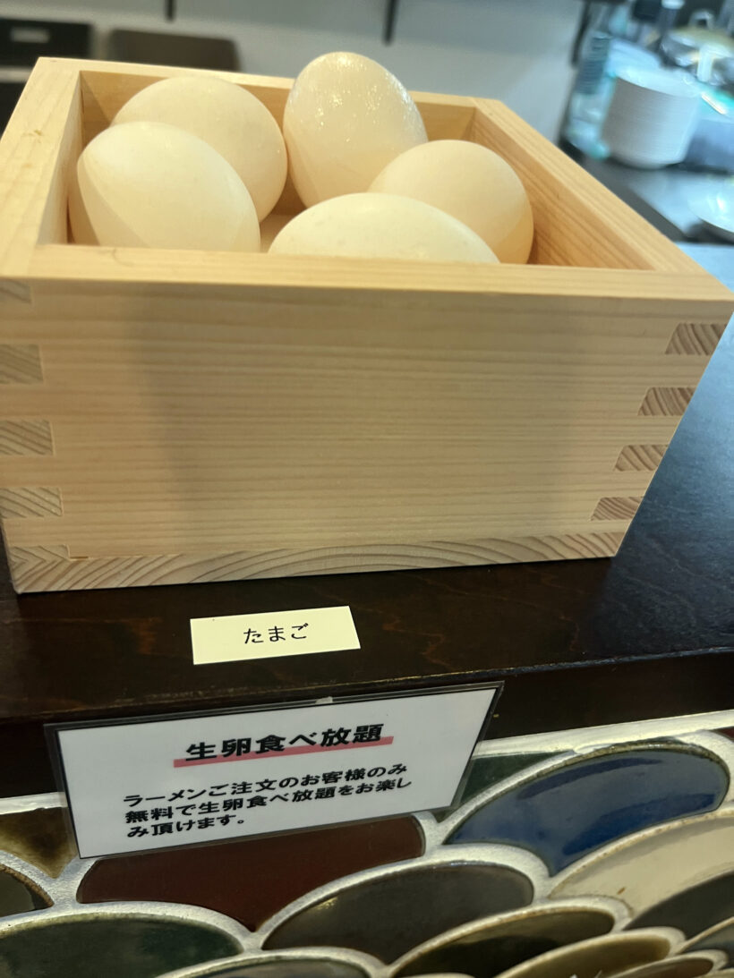 ラーメンを注文すると、なんと生卵が食べ放題だそうです。