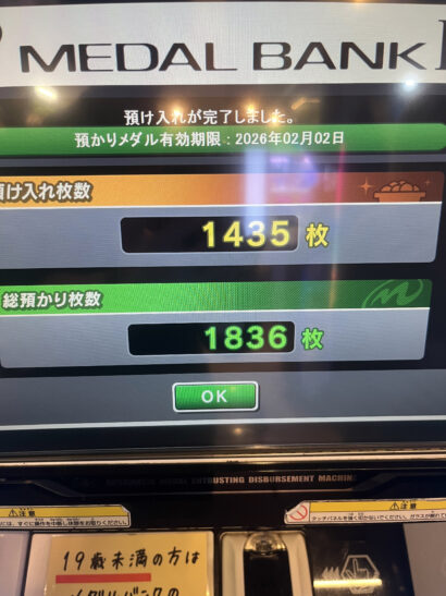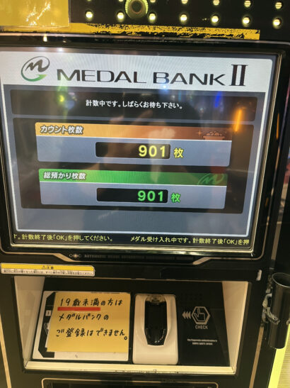 2日目でジャックポットを当てた関係で、900枚くらいをお店に預けていました。
