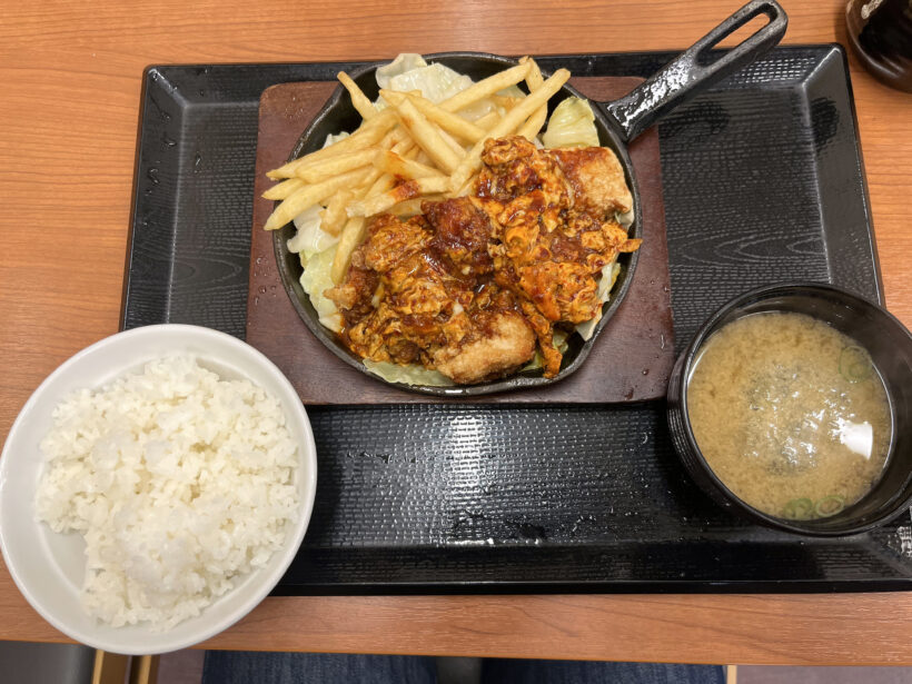 からあげの他に、フライドポテトと茹でたキャベツがあるのですが、ソースとからあげが合うのはもちろんなのですが、ソースとキャベツがめちゃくちゃいい感じだったのが驚きでした。