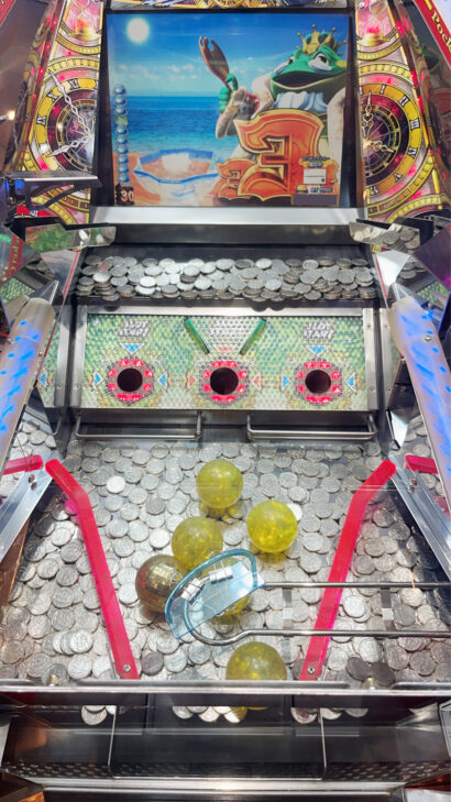 激アツな状態ではあるのですが、この台はどうもメダルが横穴に流れていく感じで、ボールがなかなか進んでくれません。