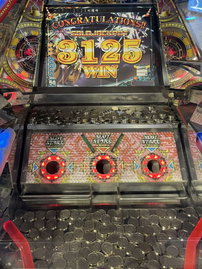 ある日、メダリングでありがたいことにジャックポットが当たりまして、かなりお世話になっているスタッフさんと一緒にメダルが払い出されている様子を眺めていました。