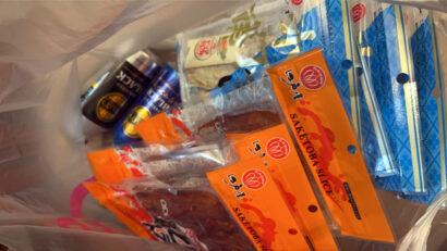 5段重ねになっていた鮭とばとむきこまい。