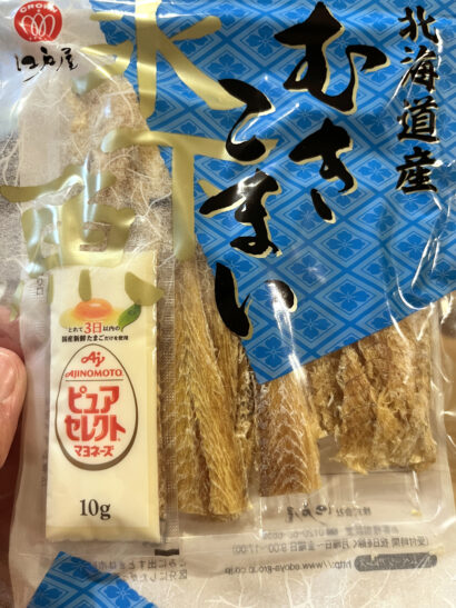 鮭とばが本命だったのですが、むきこまいも食べてみたらめちゃくちゃおいしかったです。