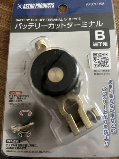 毎年この流れをするのは勘弁なので、アストロプロダクツ様で売られていた「バッテリーカットターミナル」を取り付けてみました。
