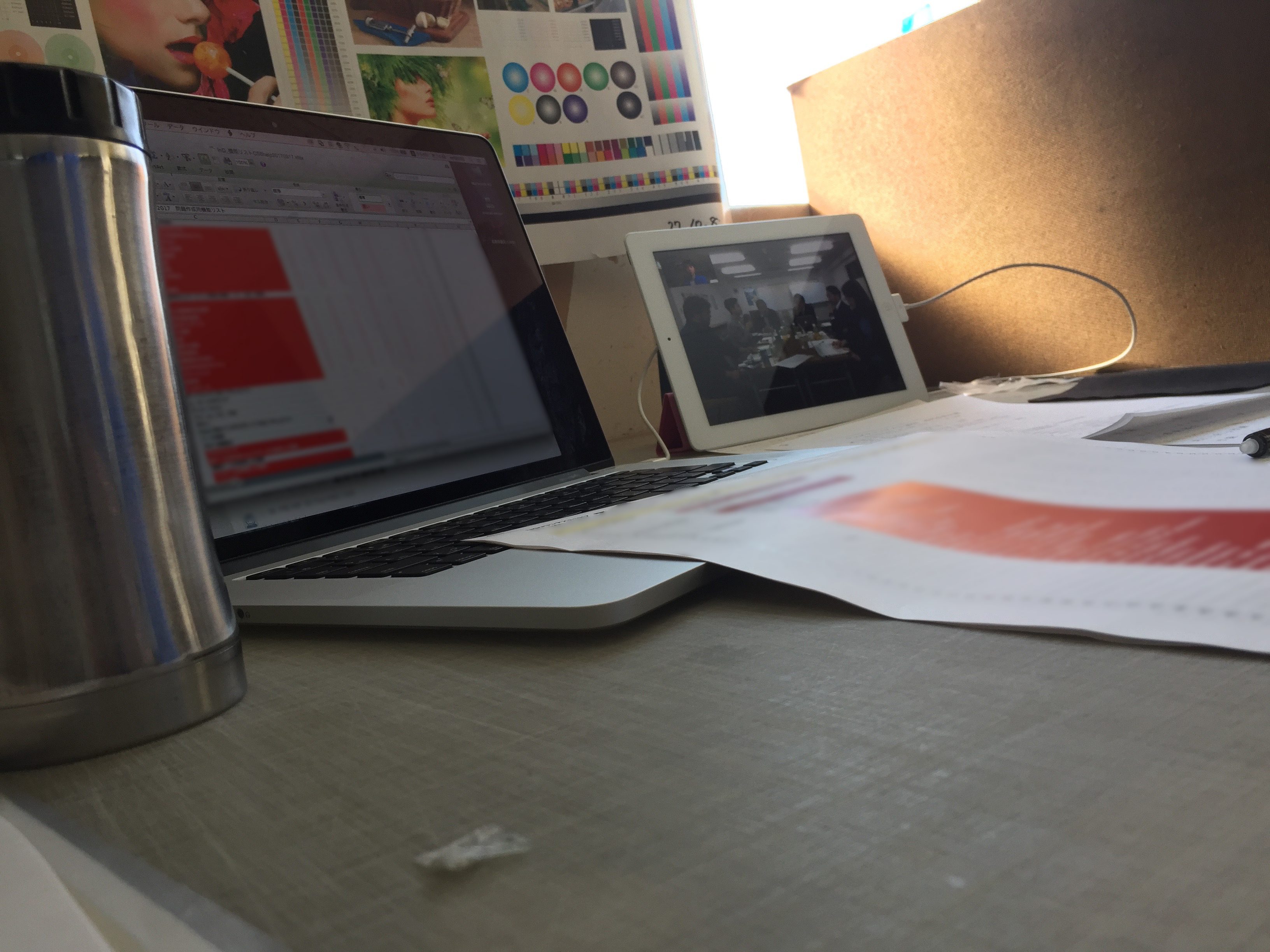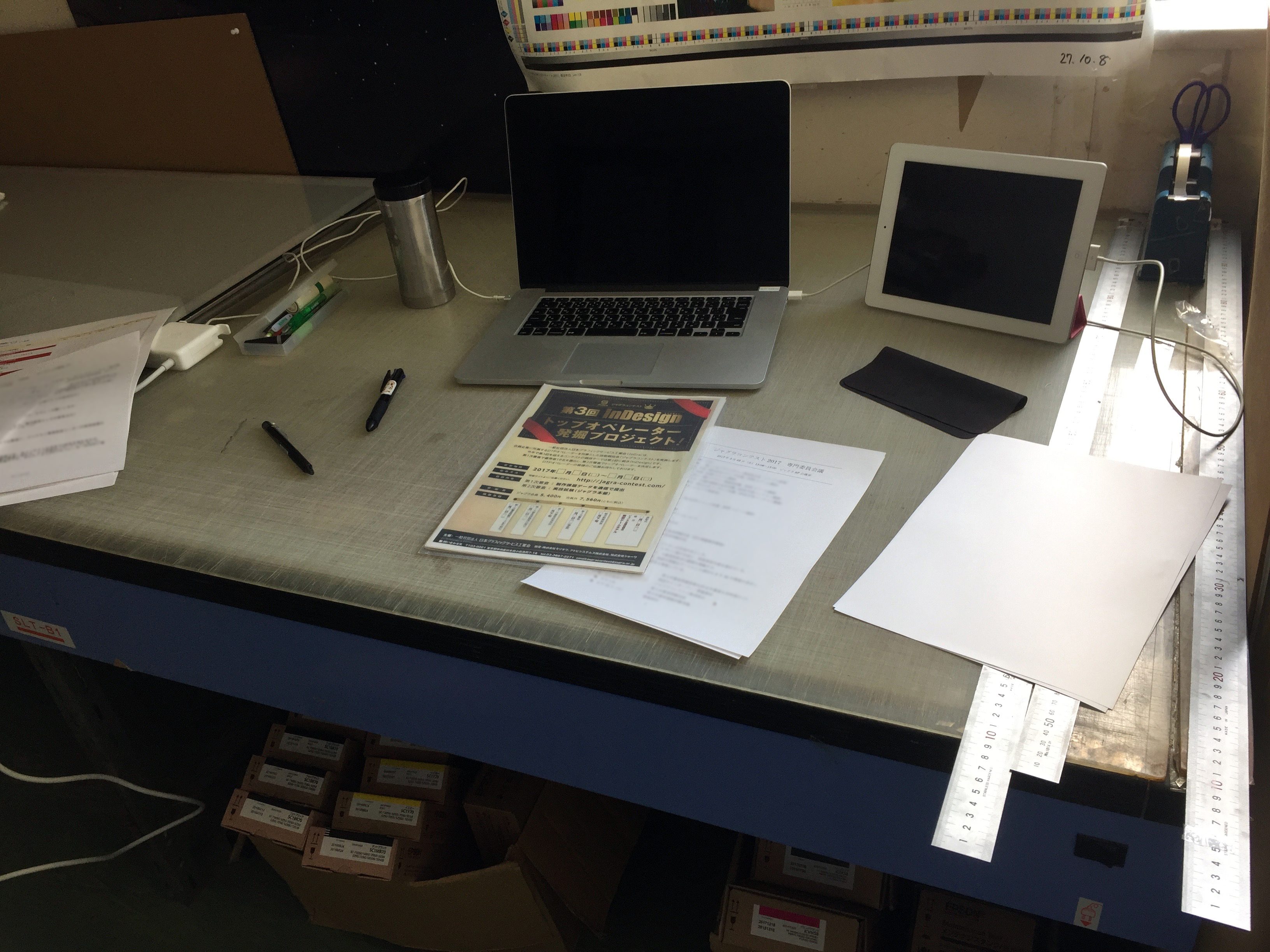 会議室を使いたかったんですが、会議で使われていたため製版課のスペースをお借りしました。