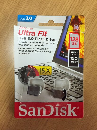 SDカードか悩みましたが、小型のUSBメモリにしました。