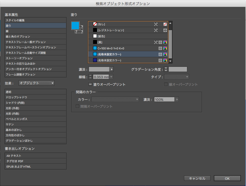 例えば、シアン100%のオブジェクトを探したいと思ったら、