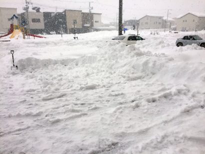 大雪で会社の駐車場に入れない状態の中、同じ駐車場のみなさんががんばって駐車できるようにしてくれていました。