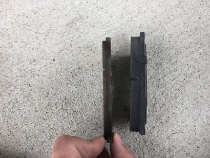 ちなみにブレーキパッド使用前・使用後の比較。