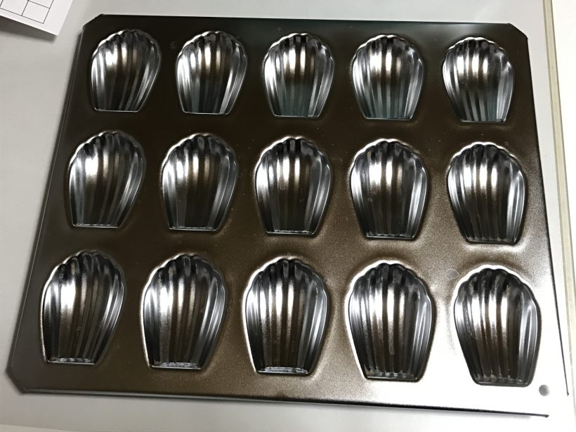 今回は15個焼ける細長いタイプのシェフ型を使ってマドレーヌを焼きました。
