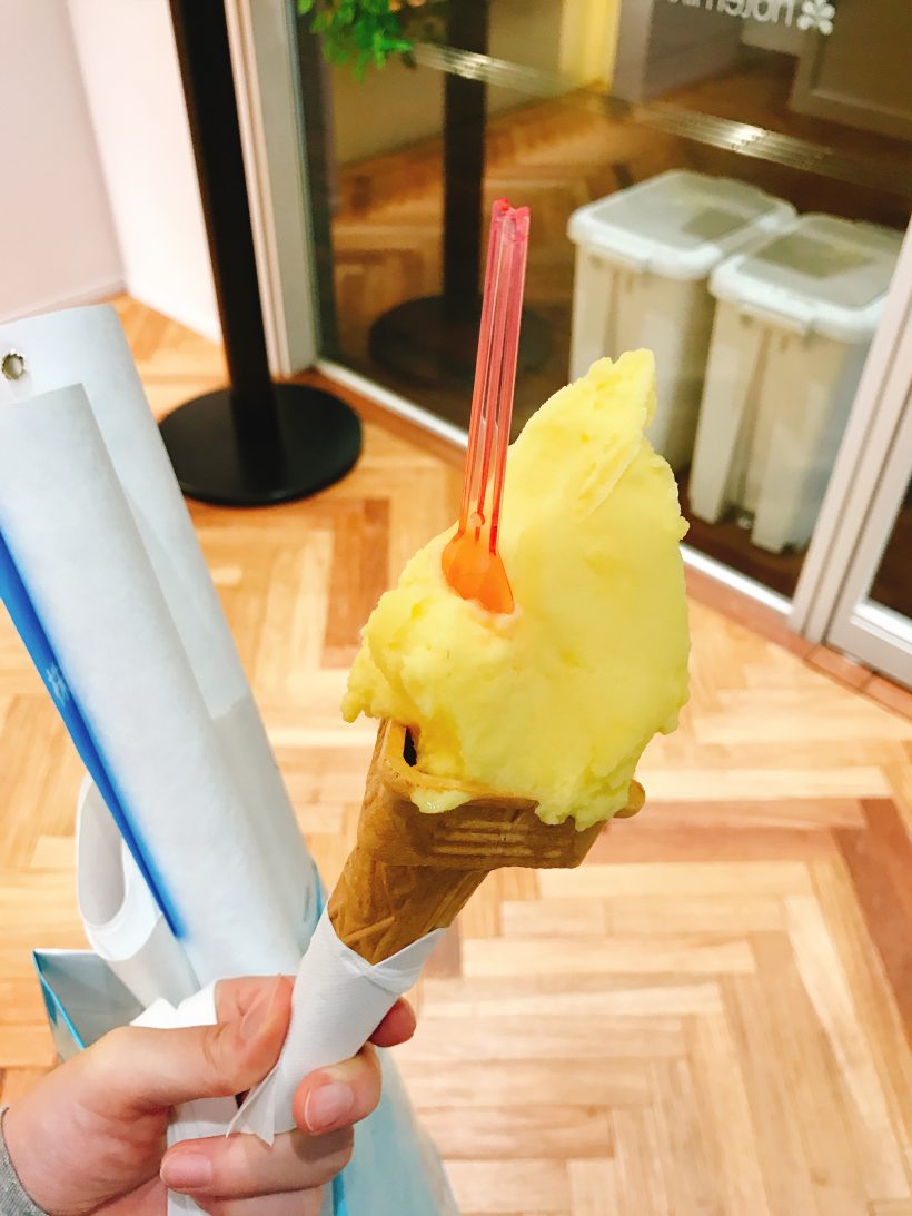 普段はカップ派なのですが、今回は歩きながら食べるのでコーンで。