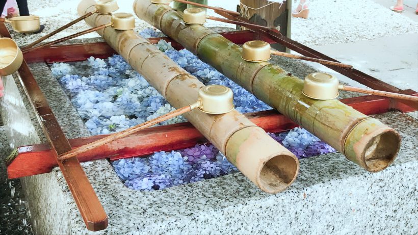 手水舎の水の中に紫陽花が浮かんでいたのが、これまた綺麗です。