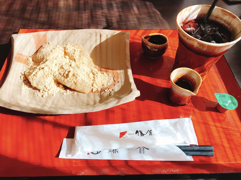 わらびもちをちょっと貰ったんですが、すごい柔らかくて、きなこと黒蜜の甘さも甘すぎずでとても美味しいです。