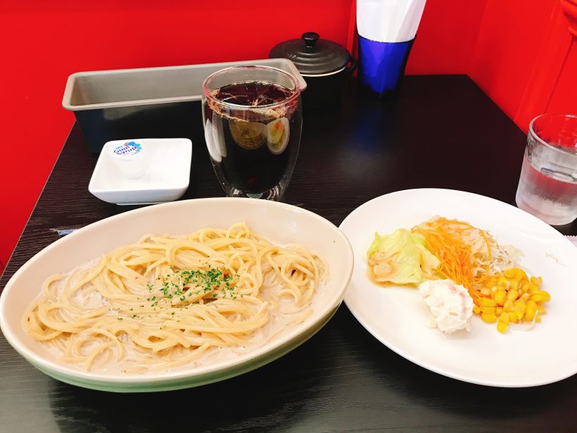 今日は日替わりはナポリタンでしたが、選んだのはマッシュルームのホワイトソースです。