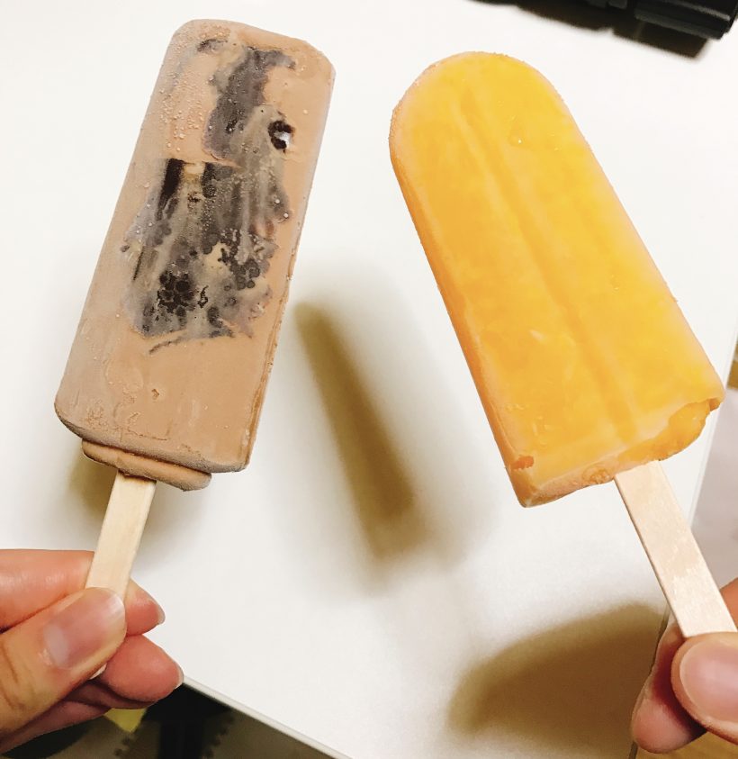 私が「チョコバッキー チョコ」で姉が「つぶつぶ果実の温州みかんバー」です!