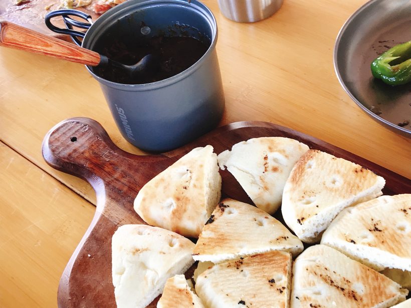 フォカッチャを焼いてからカレーをつけて食べるんですが…辛かったです。
