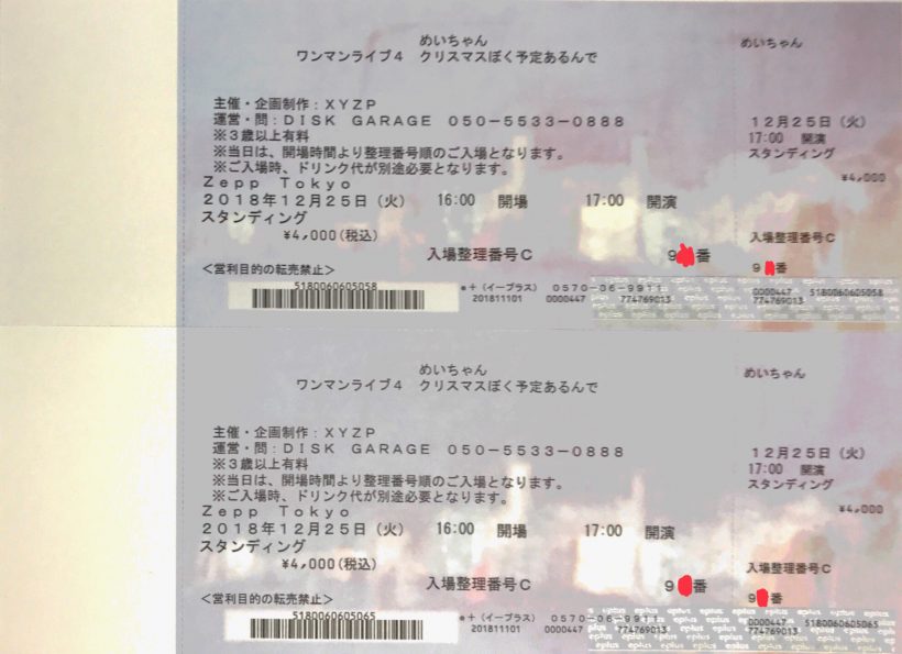 11月25日のセンラさんのワンマンライブチケットと、12月25日のめいちゃんのワンマンライブチケットが届きました!