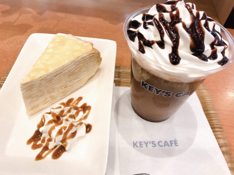 キーズカフェでは、私の大好きなカフェモカとミルクレープを食べました。
