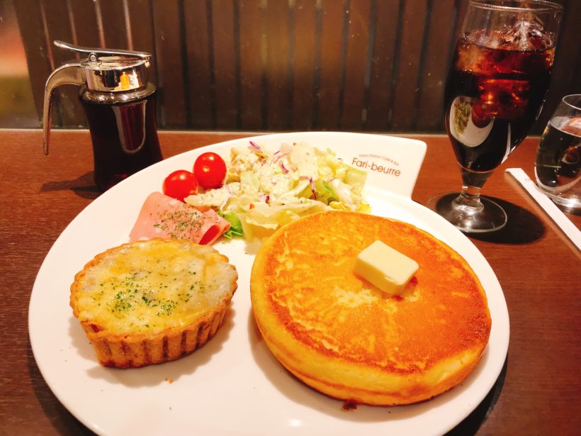 パンケーキはちょっと表面がカリカリしててスフレパンケーキとは違った美味しさがありますね!バターとメープルのザ・王道でしたし。
