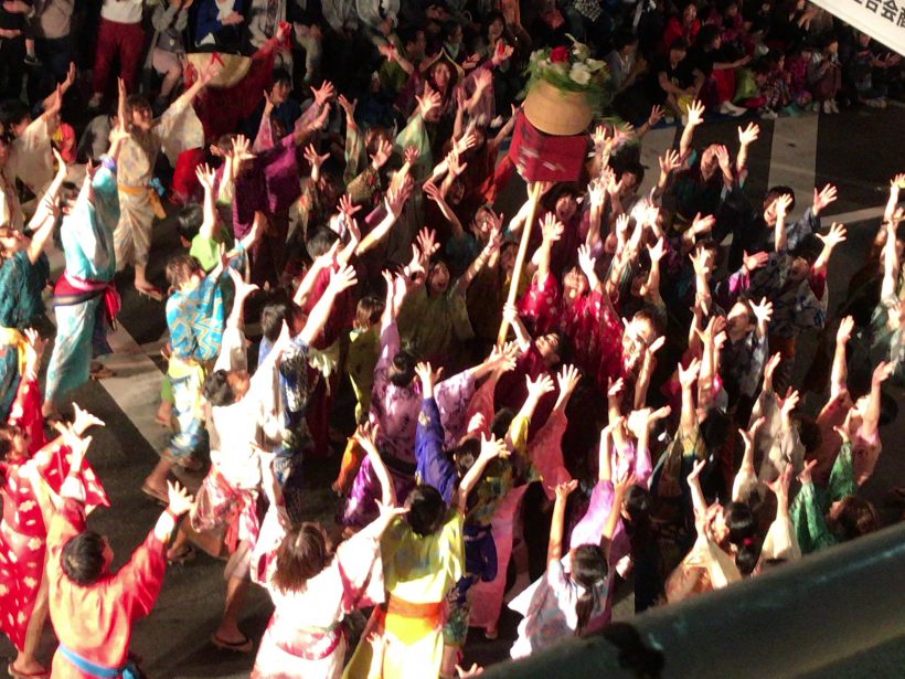 下駄総踊りはよさこいの演舞とは違ってカラフルで色鮮やかな衣装をたくさんの人が着て、小物を使って踊って、個性をだしていてよさこいとは違う良さがありますよね。