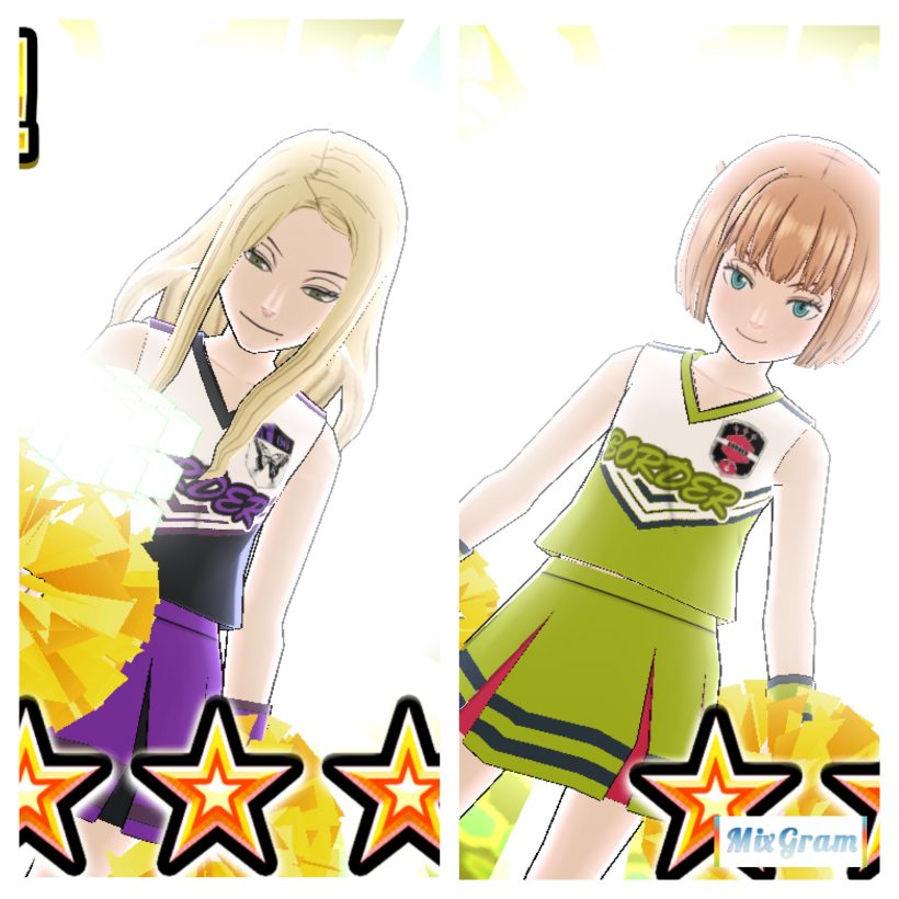 女性陣のチアガール衣装はそれぞれの隊服に合わせた色になってるんだな。