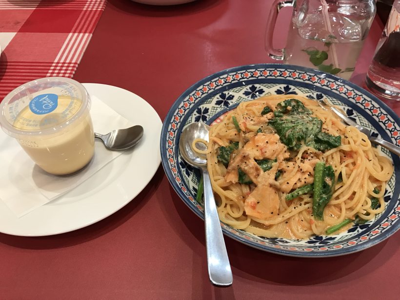 パステルイタリアーナでスモークサーモンのトマトクリームソースパスタと大好きななめらかプリンのセットにしました!