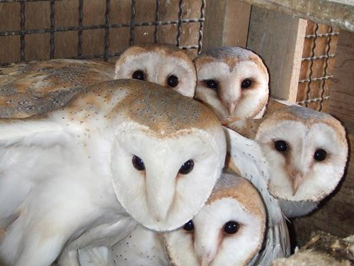 首はかしげていない感じですが、沢山のメンフクロウがこっち向いてるだけで眼福ものでしょう。