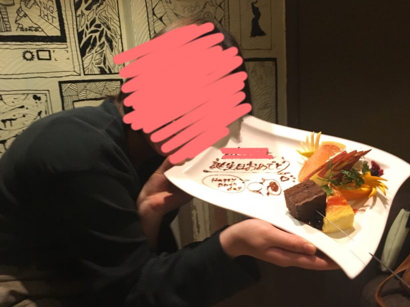 お店に頼んで誕生日プレートを作ってもらいました。すごい可愛かったです。