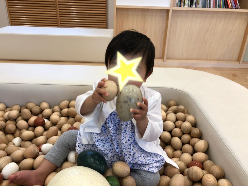たまごプールとは、木でできた卵がたくさんあって、ボールプールのようなものです。