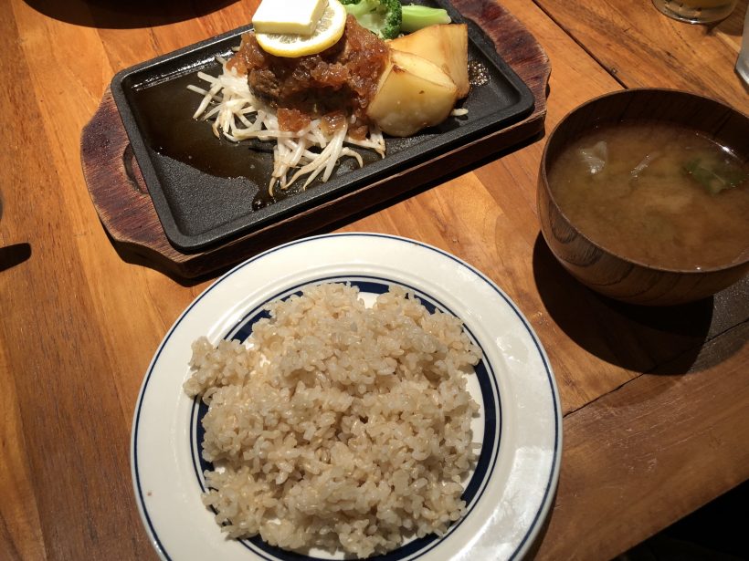 ハンバーグも分厚いハンバーグで食べ応えがありました。肉々しくて肉食べてる!って感じがしました。
