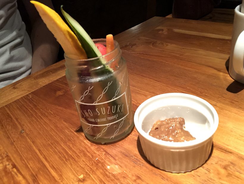 メインが来る前に野菜スティック的な物も出てきます。暑かったので、冷えた野菜がとてもおいしく感じました。