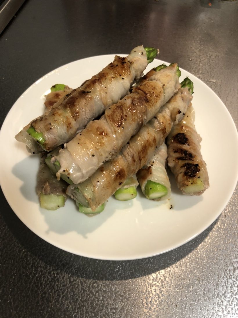 早速、新鮮なうちに奥さんがアスパラの肉巻きを作ってくれました。
