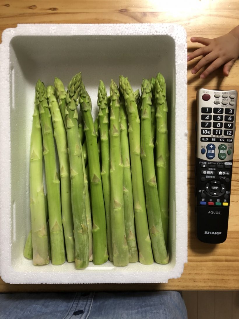 先日、奥さんがネットで買ったアスパラガス。これがめちゃめちゃでかい。