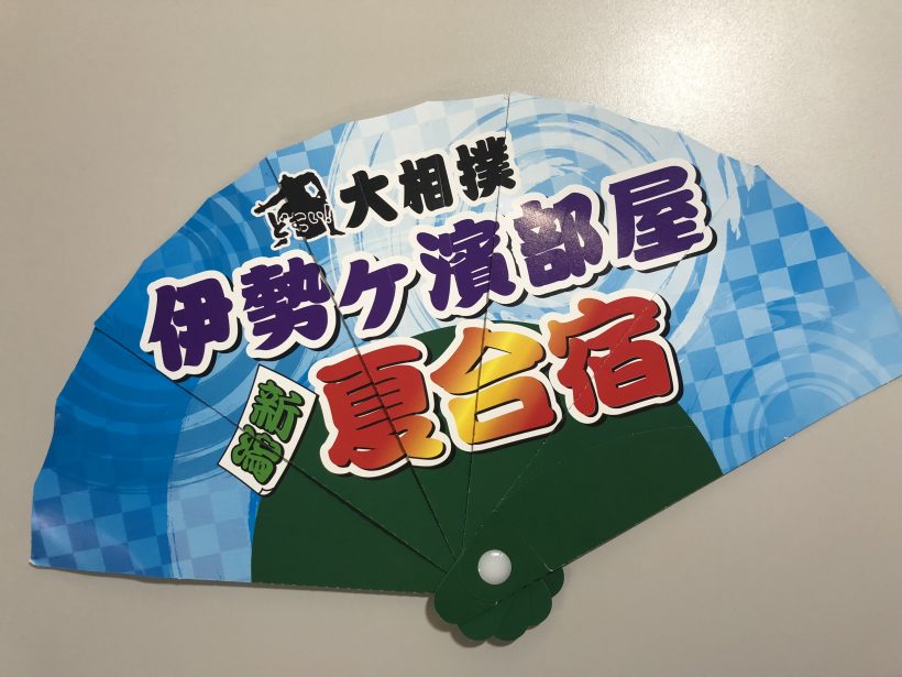 うちわを配ることもできたと思いますが、扇子はより「和」を感じるので相撲と相性がいい。