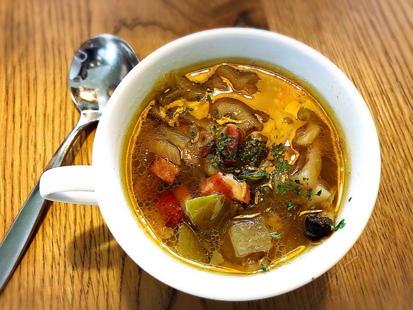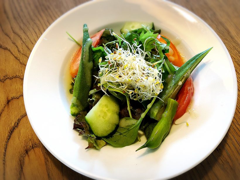 サラダには細いもやしのような野菜、スープには小さい豆のようなものが入っていて、今まで食べたことのない食材が使われていました。