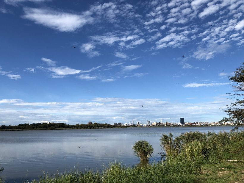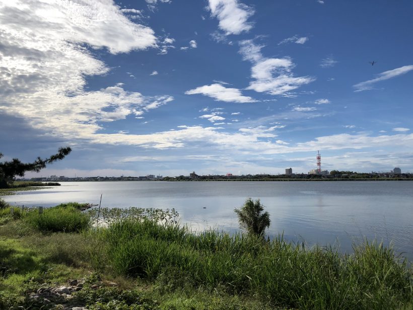 鳥屋野潟をこんなに見晴らし良いところで見れるところがあるなんて知らなかったなぁ。