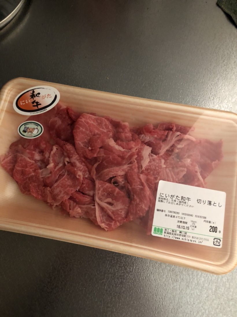 立派なステーキもありましたが、我が家はお得な和牛の切り落としを買いました。