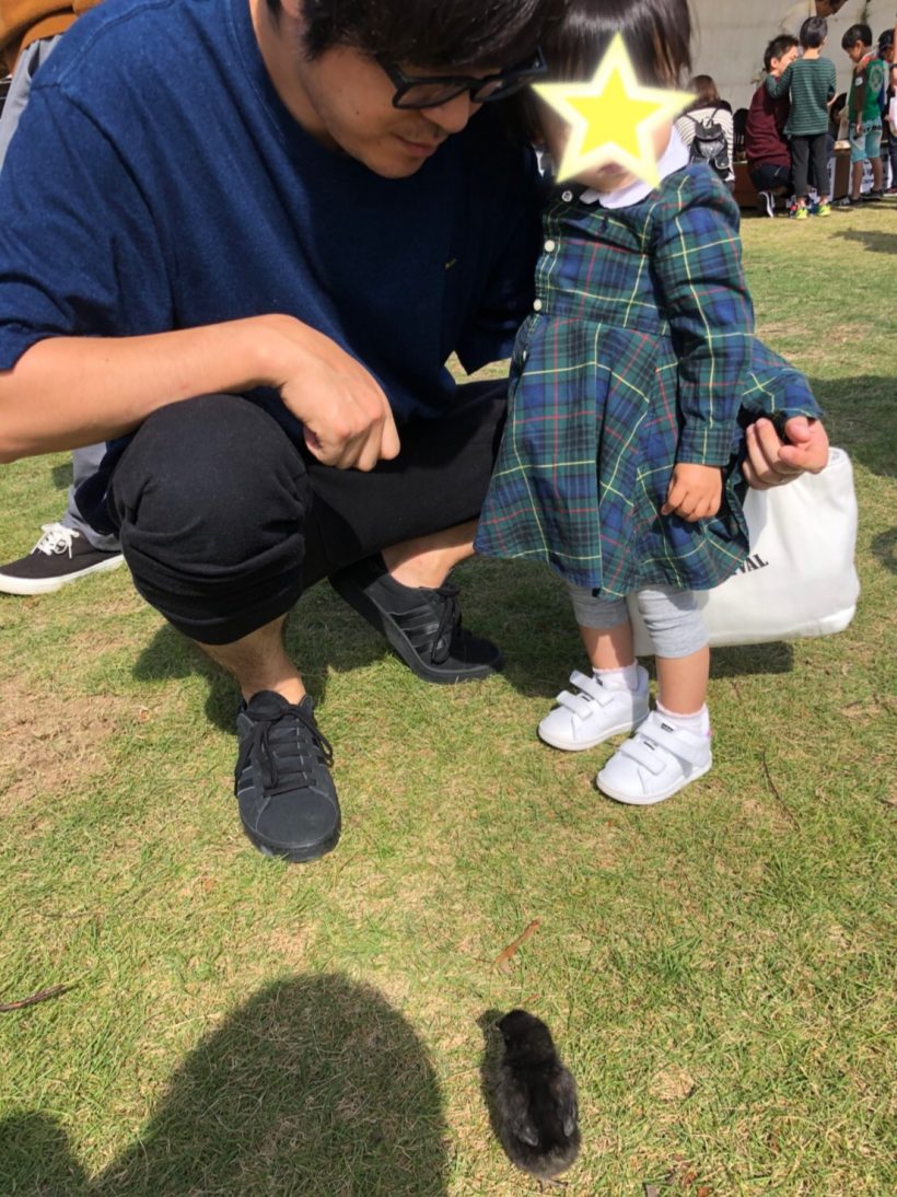 そして、多くの人がひよことのふれあい体験を楽しんでいました。うちの娘もひよこと触れ合ってもらおうと思いましたが、近づいてくるひよこを怖がってました。普段は散歩している犬に自分から近づいていくくらい動物好きなのに。自分のペースじゃないとダメなようです。
