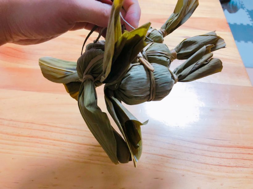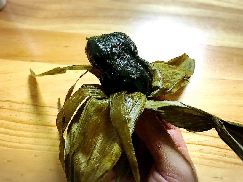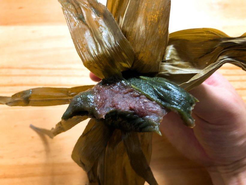 奥さん曰く、食べる時は笹をバナナのように向いて食べるのだそうで、私もその食べ方に倣って食べました。
