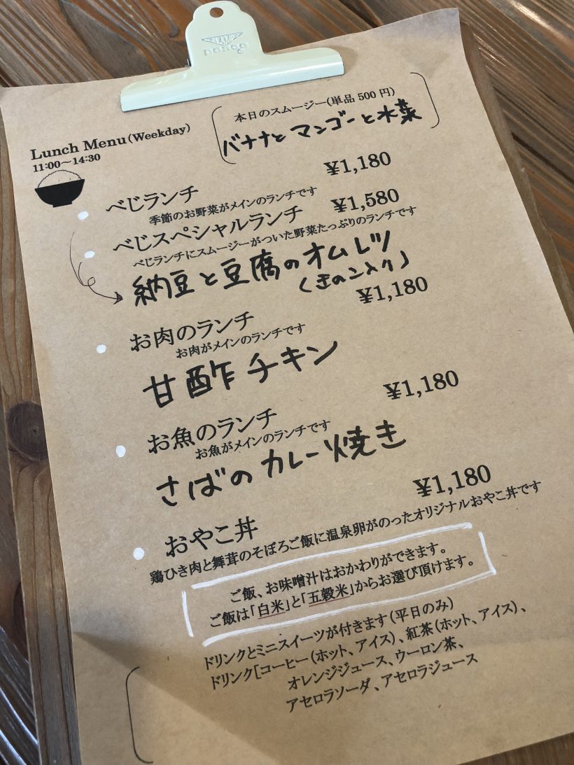 「べじランチ」が野菜中心のメニューです。奥さんがべじランチにしたので、私はお肉のランチにしました。