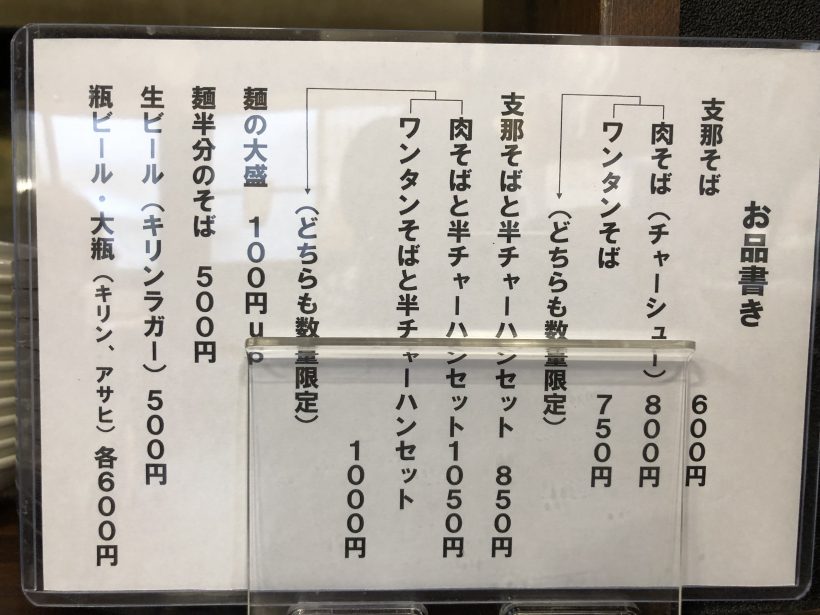 ここのお店は、基本的にラーメン(ちゃーしゅう、ワンタン)とチャーハンしかありません。