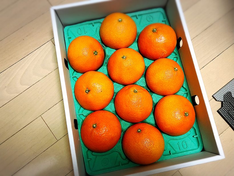 愛媛県産の「紅まどんな」という品種の柑橘。今回は3Lサイズなのでかなりでかいです。