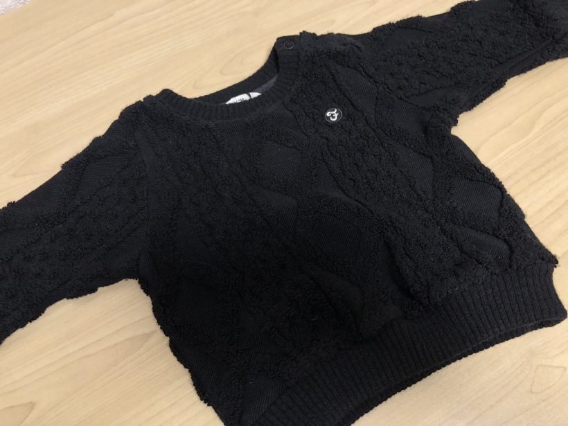 黒いセーター風スウェットはセーターだと洗濯機で洗えないけど、スウェットなので普通に洗えることと、汚れが目立たないのが嬉しい。ワンピースだけだと寒い時期は上からこれを着るだけで暖かい。
