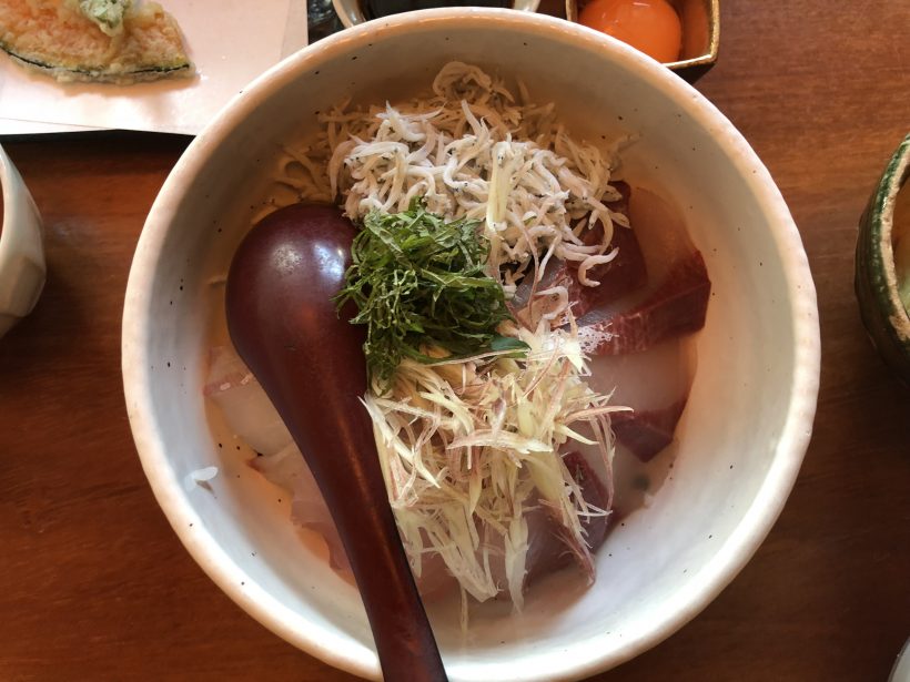 鰤とシラスと白身魚。白い海鮮丼はあまり見ないので食べたかったな。