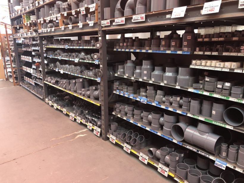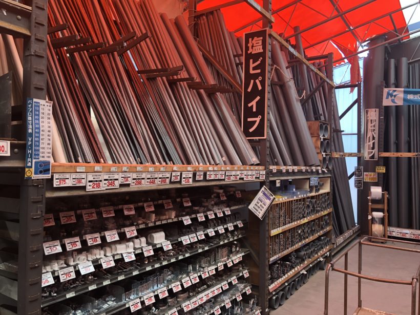 これが分かれば、お近くのホームセンターに行けば必要な材料は買うことができます。できれば大きいお店が良いですね。私は会社近くにある資材系に特化した「ムサシプロ女池店」で買いました。