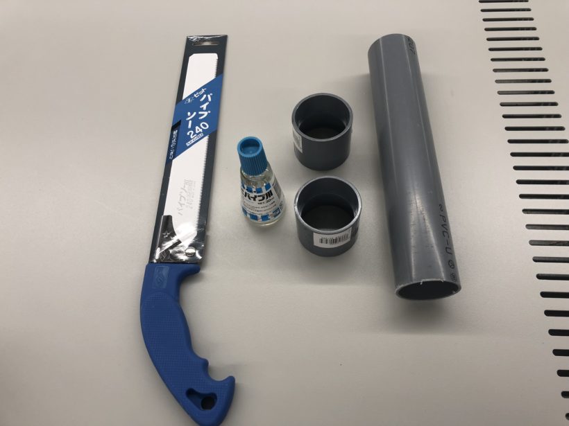 合計1,500円ちょっとでした。一番高いのは塩ビパイプ用のこぎりで1,000円くらい。