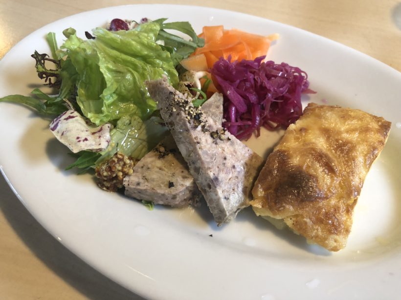 パテは大好きなのであれば、ほぼ必ずどのお店でも食べます。ここも美味しかったです。じゃがいものグラタンは優しいお味で重くなくて食べやすかった。パスタがクリーム系で重めだったのでちょうどよかった。