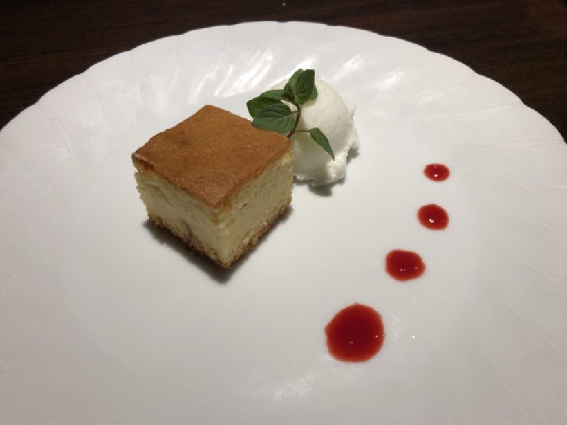 写真はないですが、自家製フォカッチャも付きます。お腹いっぱいですが、デザートはヨーグルトのアイスと一口マスカルポーネケーキなのでぺろっと食べられます。