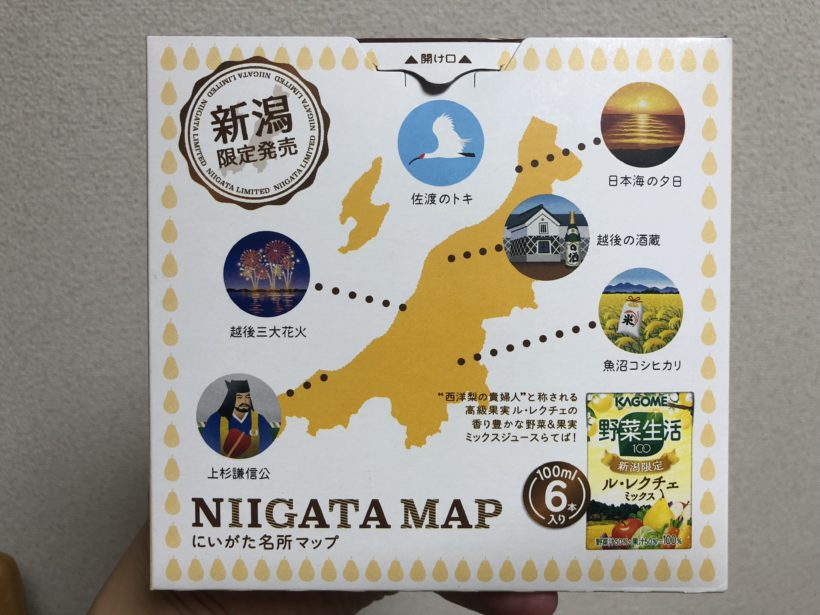 カゴメの人気野菜ジュース「野菜生活100」の新潟限定商品。新潟の有名な洋梨「ル・レクチェ」が使われた野菜ジュースです。