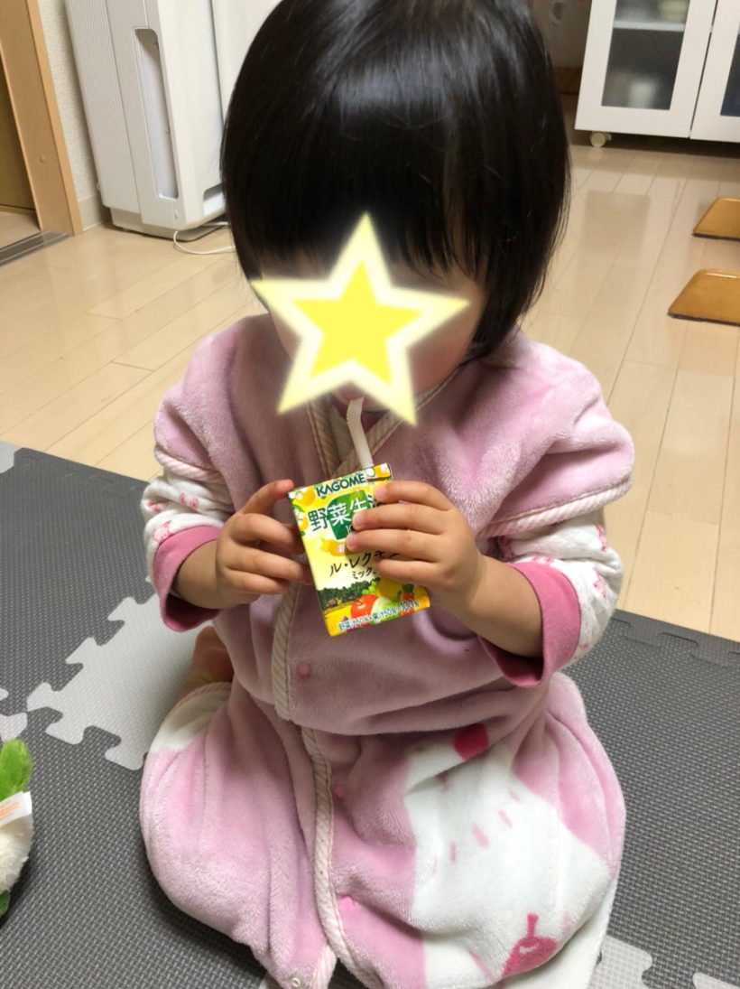 とても気に入ったようです。1歳半でも飲める野菜ジュースになっています。